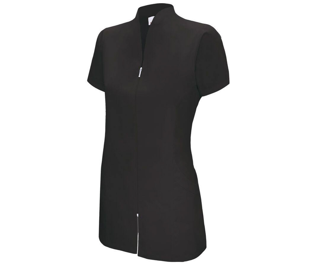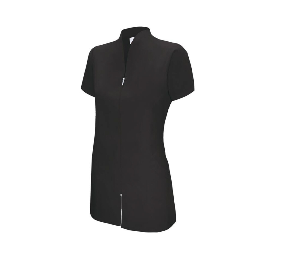 Fermeture zippée Col cheminée. Pinces au dos. Coupe partiellement cintrée. Manches courtes. 65% polyester/35% coton.