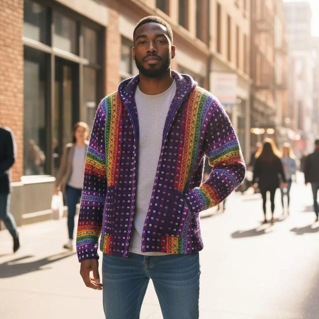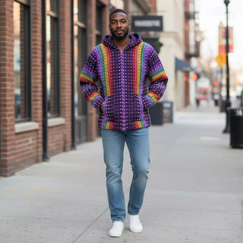 Perou Store vous présente cette très jolie Veste Arco Iris – Violeta avec fermeture éclaire, capuche et en laine de mouton. Réalisée dans les ateliers au Pérou, à la main, par des artisans locaux de la montagne.
