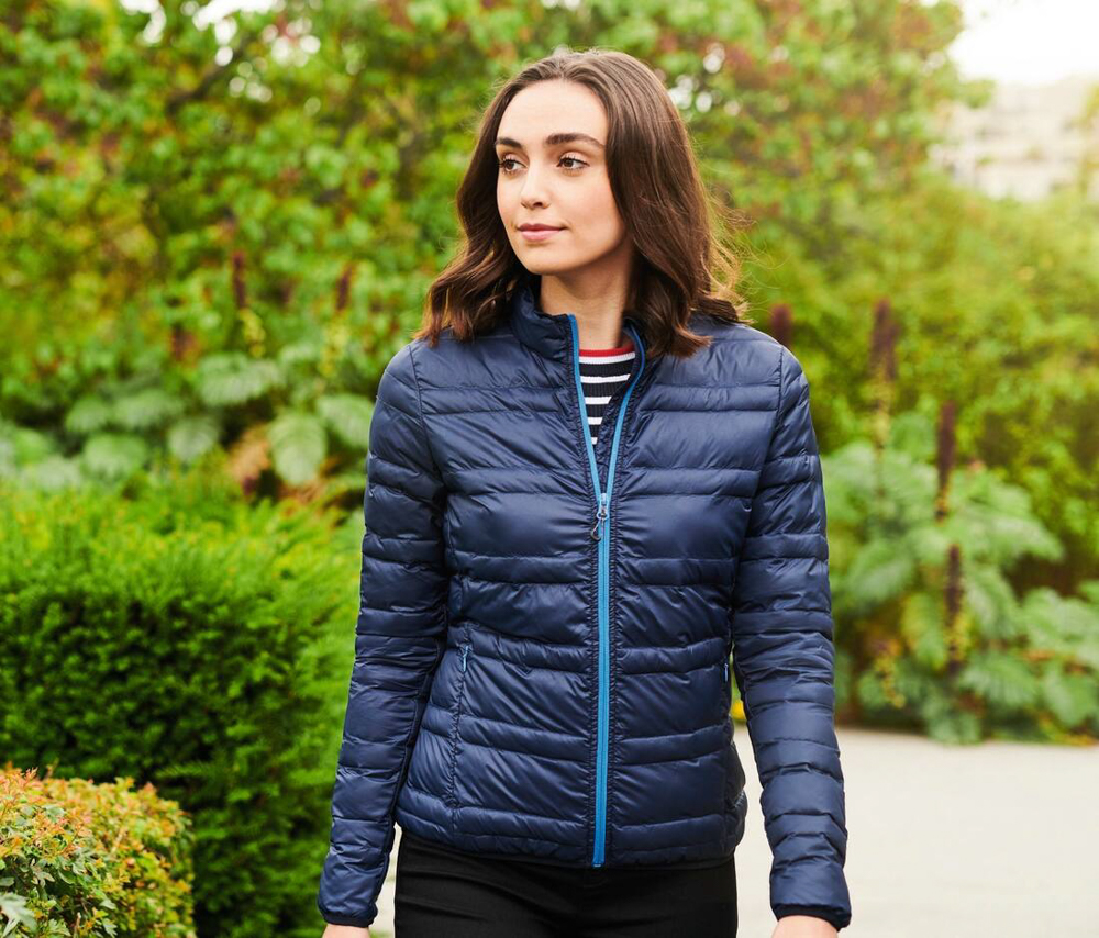 Veste matelassée femme. Déperlante. Isolation Warmloft down-touch performance technology. Protège-menton. 2 poches avant zippées. Bouts de manches et ourlet stretch. Légèrement cintrée. Extérieur : 100% polyamide déperlant ciré. Doublure : Polyester taffeta.